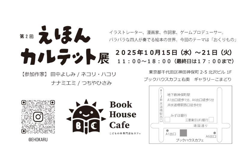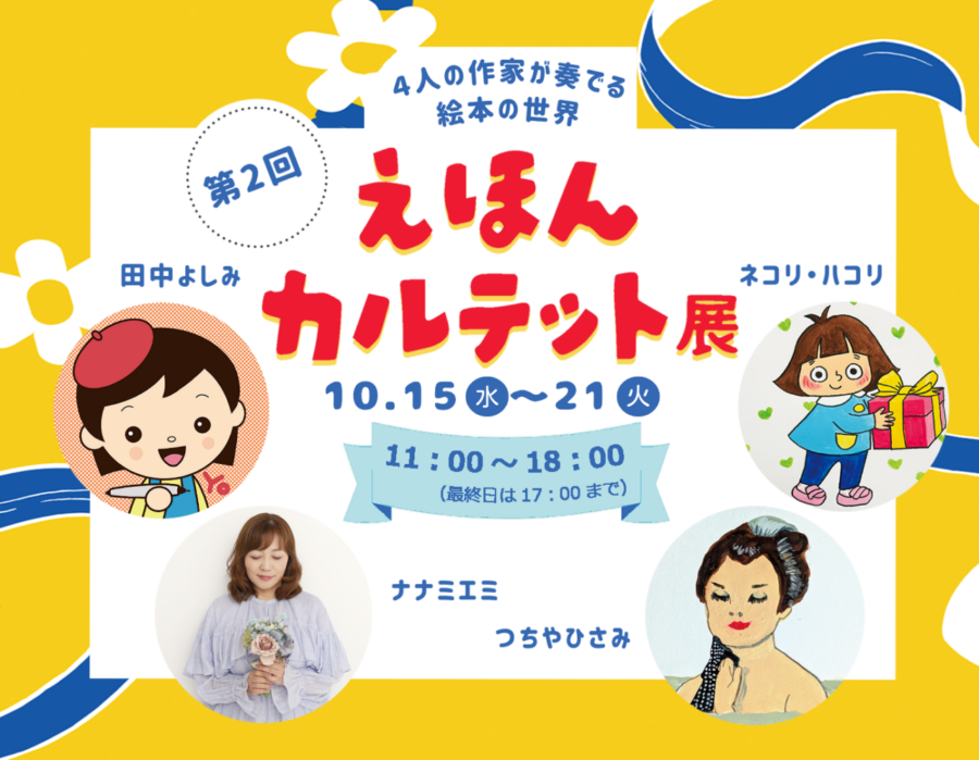 第二回 えほんカルテット展 ~4人の作家が奏でる絵本の世界~ | 株式会社 ブックハウスカフェ | 神保町唯一のこどもの本専門店 & カフェ